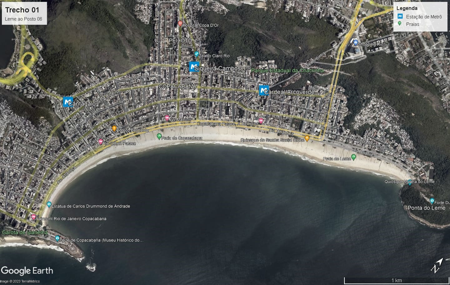 Figure 6: Beaches of Leme and Copacabana, highlighting the three metro stations.