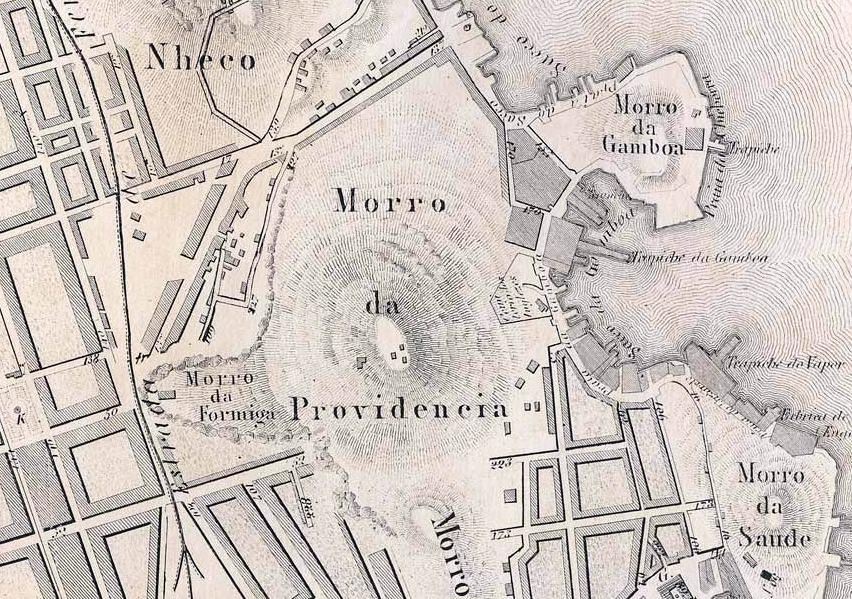 The southern tip of Providência Hill, later "consumed" by quarrying, was called Morro da Formiga (Ant Hill) in the 19th century. During the turn of the 20th century, Providência Hill was popularly referred to as Morro da Favela.