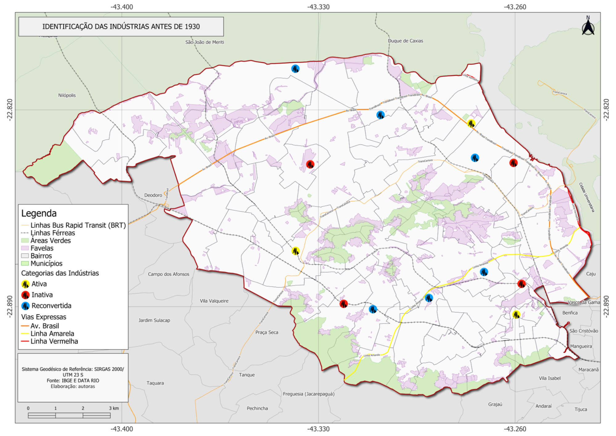 Figure 2: Map of industrial remnants inaugurated before 1930 in the railway suburbs of Rio de Janeiro's North Zone