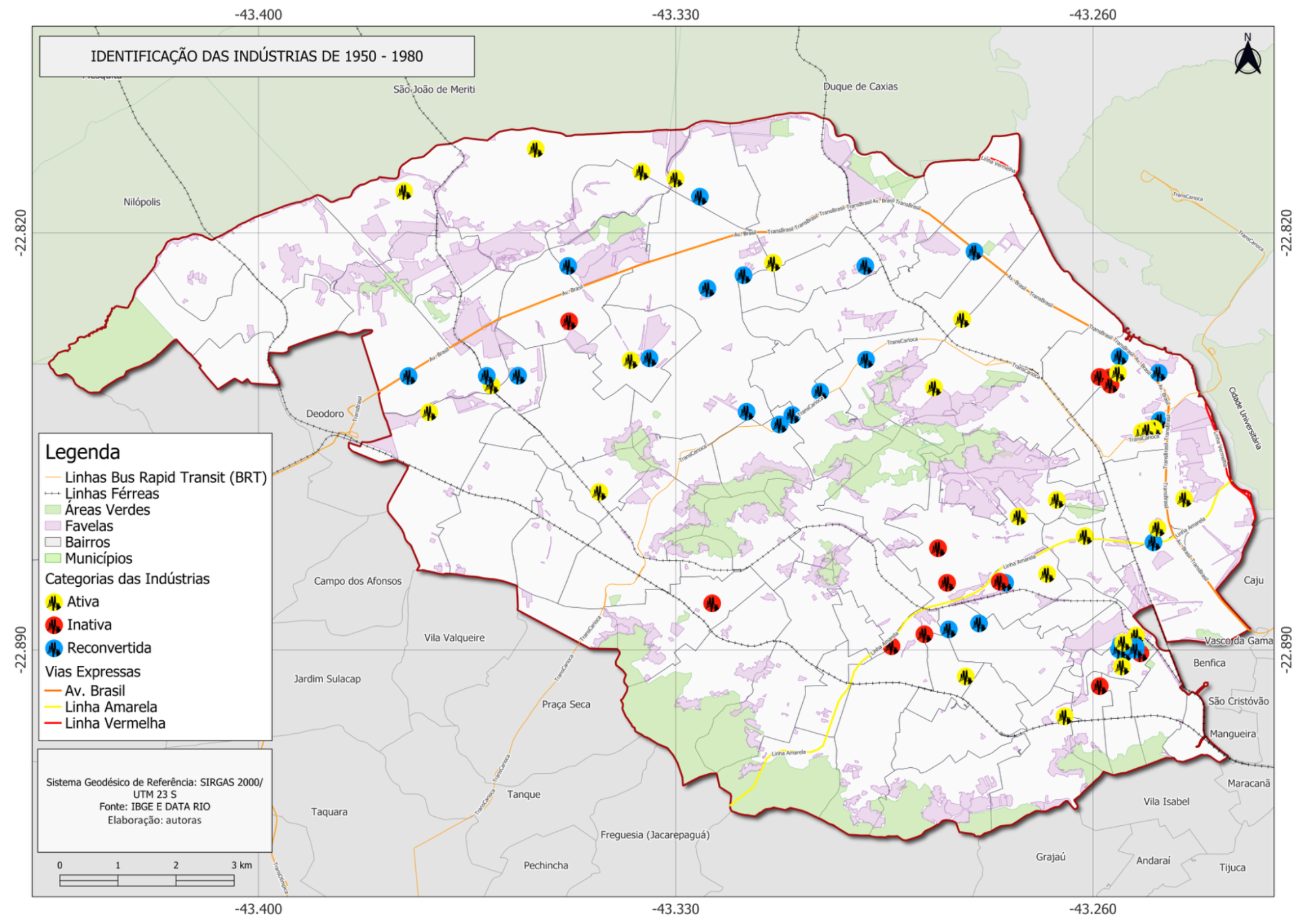 Figure 4: Map of industrial remnants inaugurated between 1950 and 1980 in the railway suburbs of Rio de Janeiro's North Zone