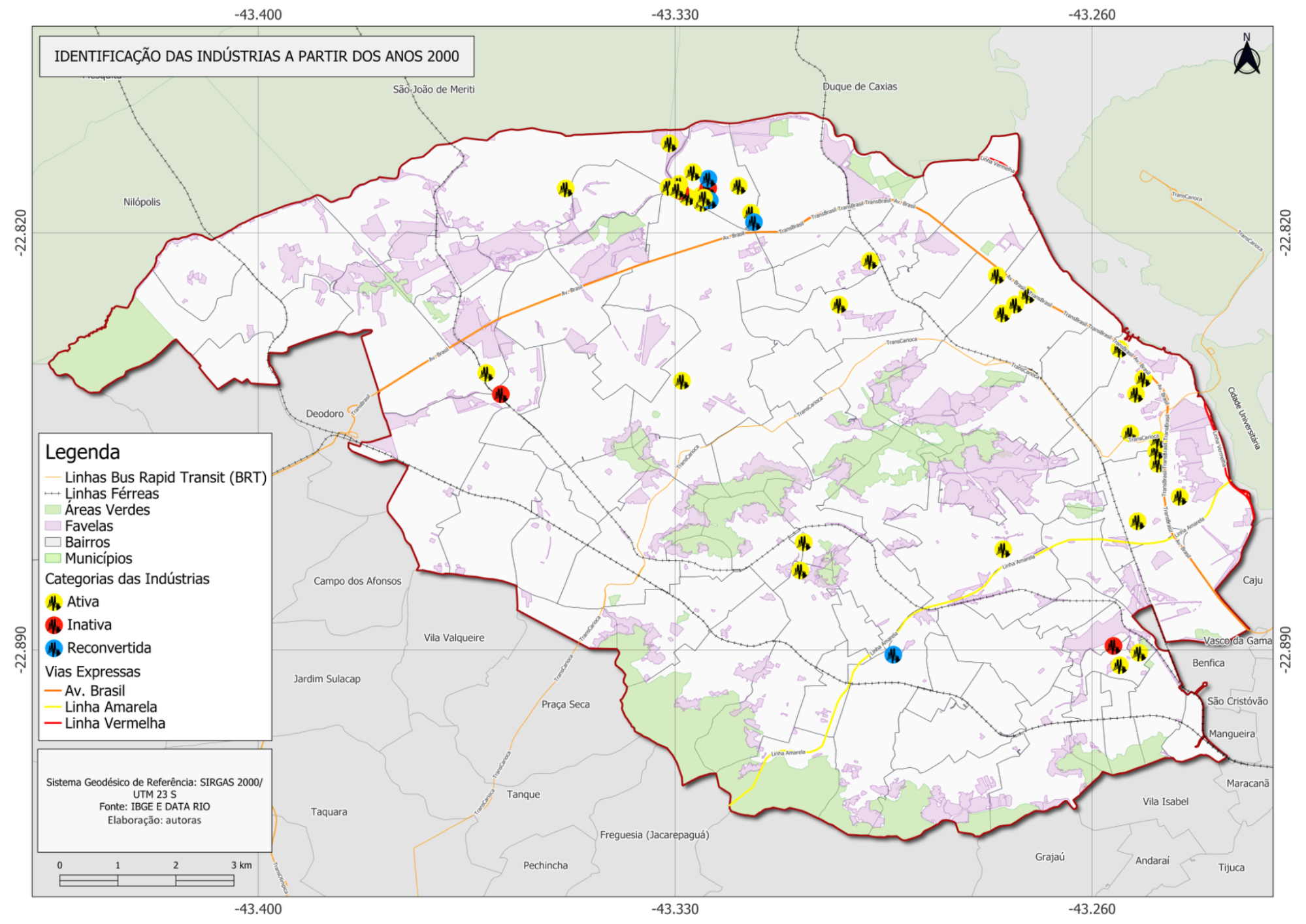 Figure 6: Map of industrial remnants inaugurated after 2000 in the railway suburbs of Rio de Janeiro's North Zone