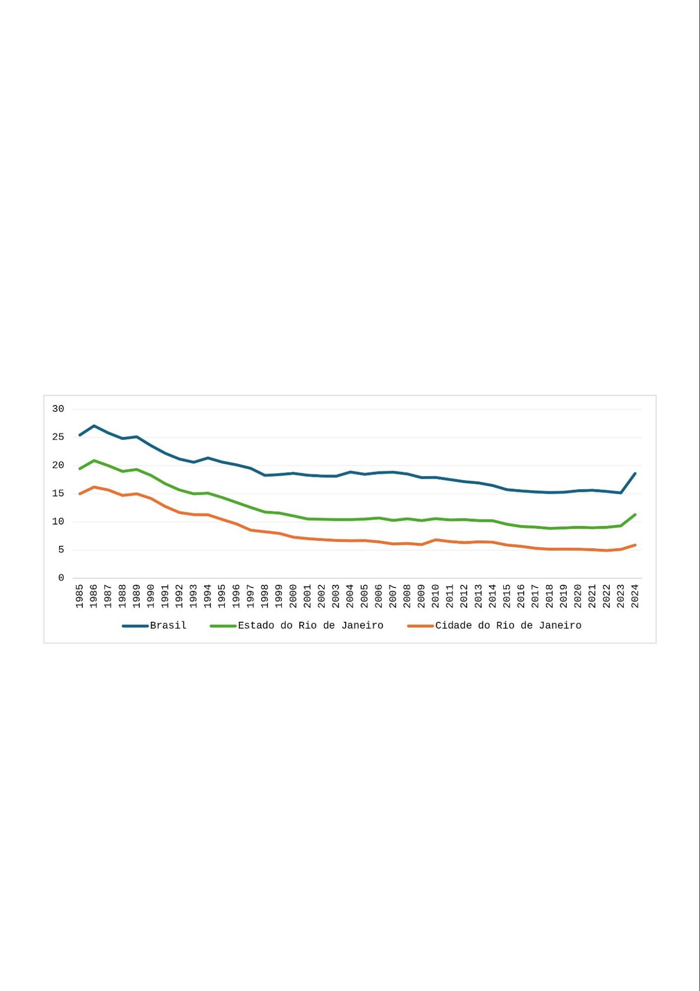 Nota-se que, estruturalmente, o Brasil tem maior representatividade da transformação na economia que o estado do Rio de Janeiro que, por sua vez, é mais expressivo na esfera nacional do que no município do Rio de Janeiro. Em termos de evolução, as três localidades se desindustrializaram ao longo do tempo. A indústria de transformação, em todos esses locais, enfrentou desafios como a abertura econômica, crises fiscais e mudanças na política industrial, o que impacta o emprego industrial. No entanto, na década de 2000, houve estabilização da participação da transformação na economia nacional, enquanto, no estado e na cidade do Rio de Janeiro, a desindustrialização se mostrou contínua, o que pode indicar que fatores econômicos e políticos locais contribuíram para uma maior intensificação da desindustrialização fluminense.