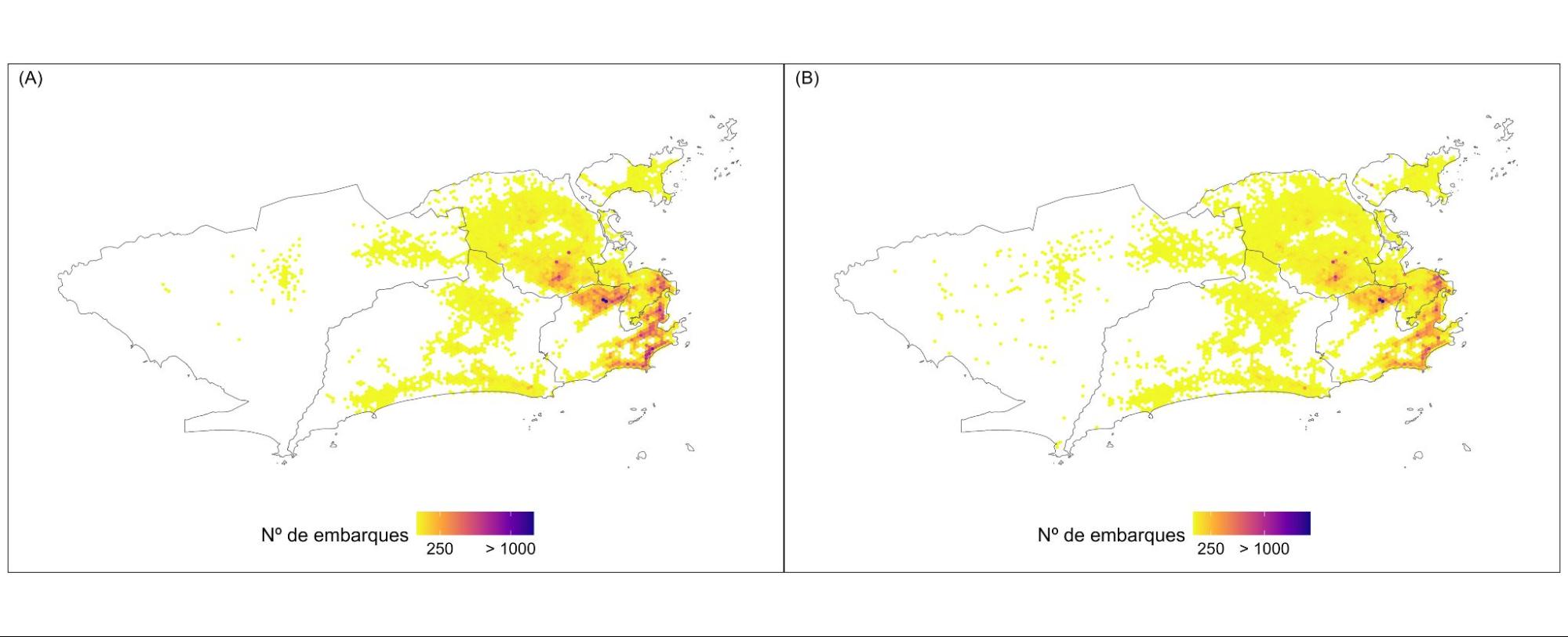 Por último, es necesario considerar que los datos de taxi inevitablemente plantean cuestiones de representatividad, es decir, los pasajeros de taxi y usuarios de la aplicación no son muestras suficientemente aleatorias de la población usuaria del transporte. En el caso de Río de Janeiro, dichos datos pueden, sin duda, indicar aspectos importantes de la dinámica urbana y del funcionamiento de los transportes, pero no son representativos de un patrón general de movilidad. Una de las principales limitaciones se refiere al posible sesgo generado por la diferencia de perfil de los usuarios de taxi en comparación con la población en general, considerando que tienden a ser usuarios de altos ingresos y residir en zonas específicas de la ciudad. A pesar de esta salvedad, se espera que el estudio pueda ser utilizado para informar políticas públicas relacionadas con el transporte en taxi en la ciudad, contribuyendo a mejorar la eficiencia y conveniencia del sistema de transporte en su conjunto. Al apropiarse de estudios sobre los patrones de demanda de taxi en la ciudad, las autoridades pueden tomar decisiones informadas sobre dónde y cuándo implementar mejoras en el transporte público, como la expansión de líneas de autobús o la construcción de estaciones de metro en áreas de alta demanda.