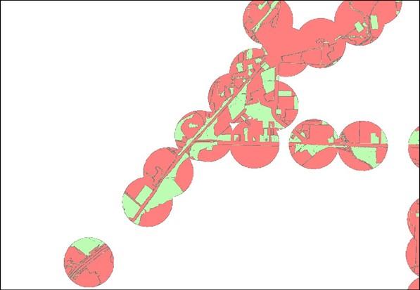 • Estações de BRT e VLT: raio de 400 metros, reflete na maior capilaridade destes modos de transporte e o papel de alimentação e distribuição no sistema de transporte.