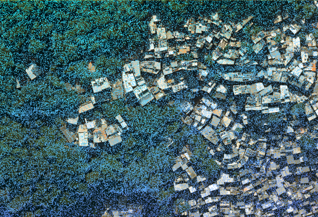 Figure 6: LiDAR point cloud (8 points/m²) overlaid on orthomosaic imagery, both acquired during the 2024 survey